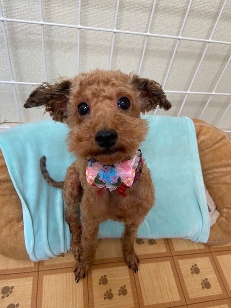 | 特徴(性格など) | 【はじめに】いつでも里親募集中からのお申し込みは、正式なお申し込みになりませんのでご注意ください。 下記『アグリドックレスキュー応募アンケートフォーム』よりご応募下さい。 ★【アグリドックレスキュー応募アンケートフォーム】★ http://my.formman.com/form/pc/HSiHA19xGo1sxlwu/ ◆アグリドッグレスキュー公式HP https://ameblo.jp/aguriinuneko/ ◆譲渡条件 http://aguri.nomaki.jp/z.html 【みゅーちゃん(仮名)】 トイプードルの女の子 年齢 推定4歳くらい 体重 3.8キロ 血液検査 済 便検査 済 フィラリア検査 (-) ノミダニ駆虫 済 混合ワクチン 済 避妊手術 済 マイクロチップ装着 済 狼爪切除手術 済 今後の医療 狂犬病ワクチン 【性格】 男女問わずとにかく人が大好き! いつも誰かにくっついていたい甘えん坊です。 【健康】 現時点では特に病気もなく健康状態は良好です。 【食事】 ドライフードだけでも喜んで食べてくれますがトッピングをつけるとさらに大喜びです。 【排泄】 トイレシートの認識がありますがシートから外れることもあります。 【散歩】 術後のためまだ練習は開始していません。 ですが活発な子ですので十分な散歩や運動が必要です。 【その他】 留守番はできますがあまり好きではありません。 不安になるとキュンキュン吠えますので、最初は吠えると思います。 対犬は今まで会った子とはそつなく挨拶できていますので、先住犬のいるお宅でもご検討可能です。 元気いっぱいで高いところも飛び乗りや飛び越えをしようとします。 脱走防止と安全には相当な対策が必要です。 可愛いみゅーちゃんを生涯愛してくださるご家族さまからのご応募お待ちしております。 ★預かりブログも是非ご覧ください 預かりブログ → ワンコのお宿 https://ameblo.jp/lealea20200913 |