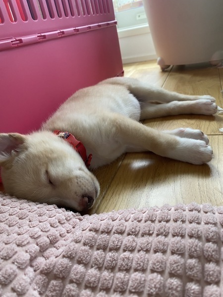 | 特徴(性格など) | クリーム色の可愛い仔犬ちゃんです。 フラちゃんと姉妹です。 マイペースガールで、不思議な性格です。 成犬になると、20キロ前後になる と思います、 一回目のワクチン終了。 譲渡前に動物病院にて、血液検査や診察を必ず行います。 |