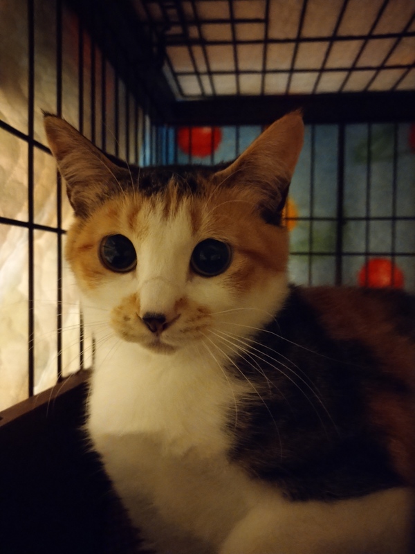 | 特徴(性格など) | 仮名・ミミちゃん キレイな縞三毛模様の女の子です。 お口の「カフェオレ飲んだの?」と聞きたくなってしまう模様がチャームポイント♪ ふんわり毛並みで、まん丸ボディです。 性格は臆病ですが、とても賢い子です。 只今、人馴れ練習中のため触ることは出来ません。「フーッ」、「シャーッ」、猫パンチは当然まだ出ます。 孫の手や歯ブラシでなでなでを練習していますが、不服そうです。 ただ、おやつは大好きなので可愛く食べる姿が見られると嬉しくなります。 ●3種混合ワクチン 済み ●ノミ、ダニ、腸内寄生虫駆除済み ●避妊手術 済み ●血液検査 済み ・猫白血病ウイルス 陰性 ・猫免疫不全ウイルス 陰性 |
