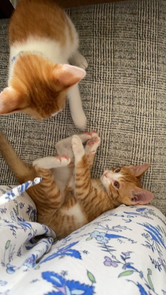 | 特徴(性格など) | 茶とらの子猫の兄弟です。性格はおっとりしていて甘えん坊で人懐っこいです。トイレも覚えました。毎日楽しいポーズで笑わせてくれます。 | ||