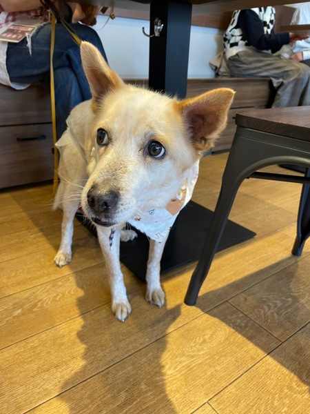 | 特徴(性格など) | 名前:もなか 犬種:Mix 性別:メス♀ 毛色:白薄茶色 年齢:12歳ぐらい 体重:10.2kgくらい 性格:とても穏やかで、人にも犬にも優しい子です。 人にはちょっと慣れるのは時間がかかりますが、結構早くに確実に慣れます(^^) ドッグランでも、知らない人に「撫でてー」と背中向けるほどに慣れてきてます。 犬にはしつこかったりすると、唸ったりしますが、今まで口は出したことはないです。 嫌だったら唸りながら逃げるので、喧嘩にはならないです。 散歩は引っ張らずに、ルンルン楽しそうに歩きます。 お散歩は好きです。 トイレは、基本的には外でします。 1日2〜3回の散歩で外でしたら、家の中ではほぼしないです。 レスキュー前は排泄がしたい時にできなくて膀胱炎っぽくなっていたので、がまんはさせないようにしています。 |