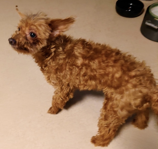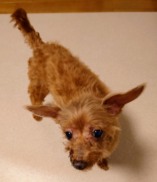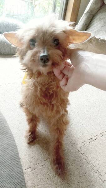 | 特徴(性格など) | ■特徴(仮の名前)チャコ トイプードル♀ 推定8~9才 体重3,3キロ ■性格・暮らし ・今のところ無駄吠えありません ・お散歩、おトイレは練習中です ・穏やな性格で他犬とも問題はありません ・歯はありませんが日常生活には問題ありません ■今までに行った医療行為 ・避妊手術 ・抜歯処置 ・フロントライン ・混合ワクチン接種 ・マイクロチップ ・ドロンタール |