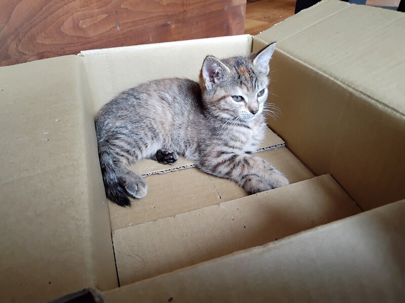 | 特徴(性格など) | オメメの大きいサビ猫の美少女ちゃんです。 ふわふわで、ふんわり優しい色合いの毛並み。 お膝が大好きな、人懐こい家庭内ストーカーです。 他の猫とも仲良くできます。 |