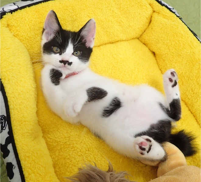 | 里親募集する理由 | 交通量が多く、カラスの襲撃のある畑の中、ブルーシートをかけただけのエサ場でお母さん猫が子育てをしていて、交渉の末、母子共に保護されました。 |