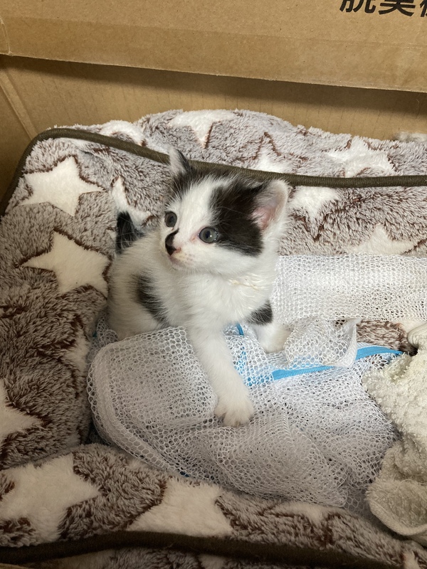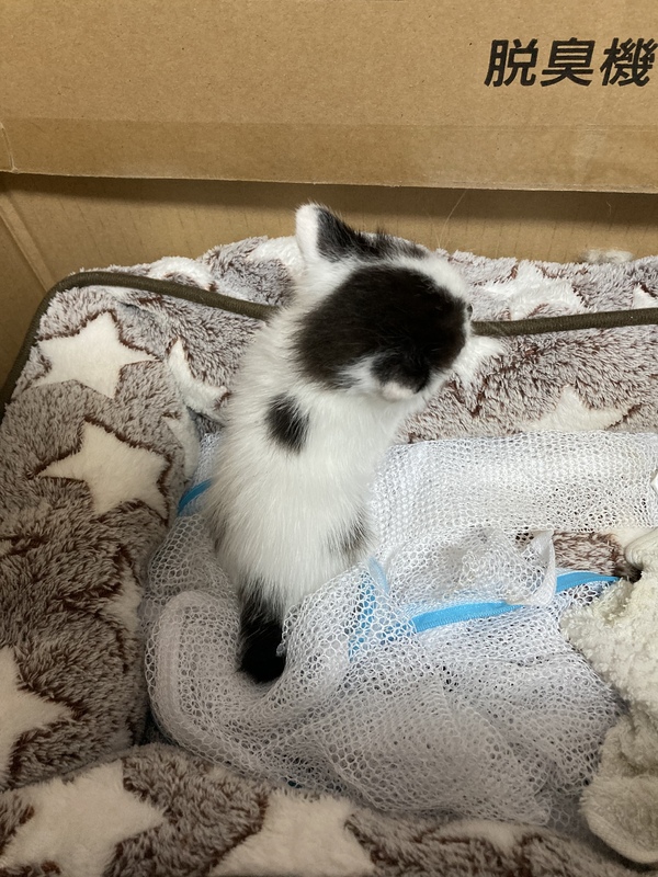 | 特徴(性格など) | 白地に黒模様の元気いっぱいな女の子(仮)です。(おそらく女の子だそうです) | ||