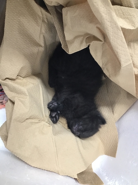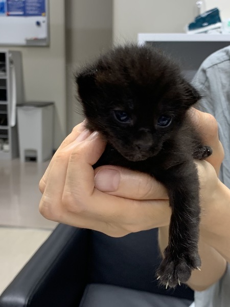 | 特徴(性格など) | 2022年7月7日、熊本市中央区の路上で子猫を保護しました。 黒い毛並みですが、縞模様が見えます。 病院に連れて行ったところ、生後3週間のオスということでした。 体長15 cmくらい、体重300 g程度です。 まだ離乳していないため、3時間おきにミルクを飲ませなくてはいけませんが、7/14くらいから離乳食を始められると思います。 ノミもなく、健康です。 やんちゃで元気な子です。 まだ幼いため、ワクチン未接種、避妊手術もまだです。 |