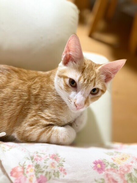 | 特徴(性格など) | 預かりさんの元で過ごしています。 初めは怖がりさんでしたが超甘えん坊くんに。 膝の上に座ると手の平に頭をつけて手のひらを舐めてくれます。 まだまだ仔猫でヤンチャですが、穏やかなやさしい性格をしています。 実際に見て頂き可愛いさを実感して下さい。 ・ノミダニ回虫駆除済み ・エイズ(−)白血病(−) ・3種混合ワクチン接種済み ・去勢手術済み |