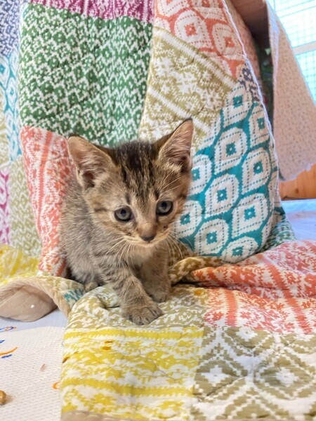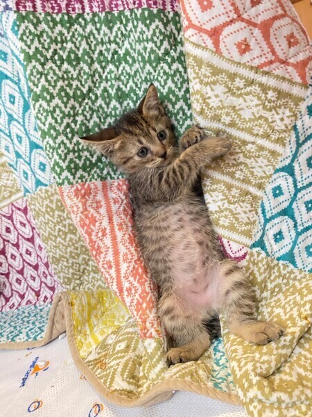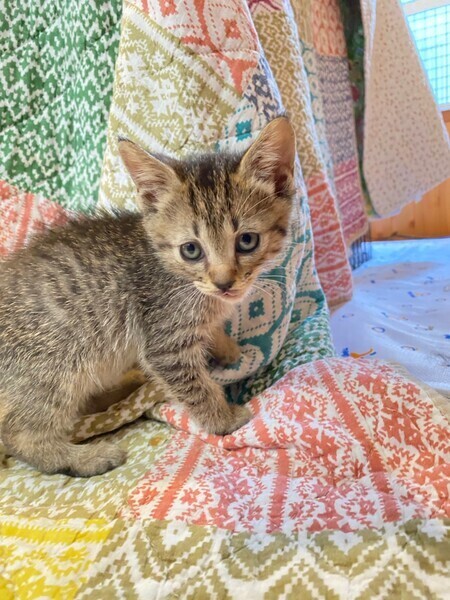 | 里親募集する理由 | 会社の倉庫内で生まれ、親子ともども猫風邪症状が酷かったためレスキューしました。 | ||