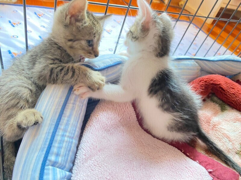 | 特徴(性格など) | かくれんぼ大好き。 おもちゃ大好きな千(せん)ちゃん。 人のことも大好きで、寄ってきてよじ登ってきます。 ころころまるまるなかわいい千ちゃんを よろしくお願いいたします。 初めて猫を飼われる方も大歓迎! お迎えの際には勿論、スタッフが丁寧にアドバイスさせていただきます。 ~子猫から飼うならぜひ二匹飼いをオススメします!~ ・子猫同士で遊びを通じながら社会性を身につけることができます。 ・遊び相手が居るのでお留守番も上手にできるようになります。 ・仲睦まじい猫たちの姿に飼主さんも癒され倍増!幸せホルモンに包まれます♪ 猫の二匹飼いは思うほど大変ではありません。 子猫からお迎えするなら、ぜひ二匹飼いもご検討ください(^-^) |