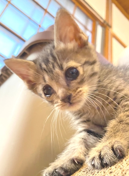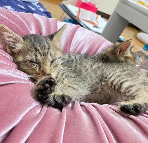 | 里親募集する理由 | 会社の倉庫内で生まれ、親子ともども猫風邪症状が酷かったためレスキューしました。 | ||