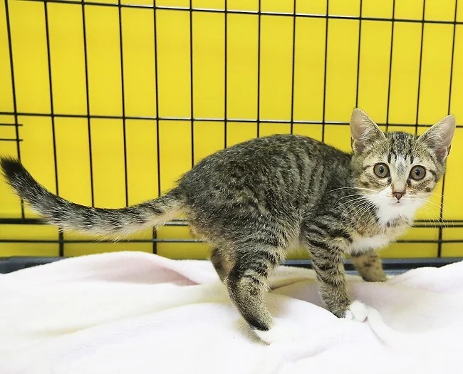 | 特徴(性格など) | 4s68、4s69、4s70、4s72、4s73の5頭は兄弟です。 この子はキジトラですが、縞の部分が薄めの優しい色味で、しっぽは真っ直ぐです。 抱っこ、膝乗りはやや抵抗しますが、爪切りが始まると静止する「わかってる」性格です(笑)。 膝から床への大ジャンプを見せるなど、運動神経が良さそうです。また、兄弟の後ろからじっとこちらの様子を伺ったり、「まずい…」と思ったら動きが止まるなど、何かと面白く個性的です。 |