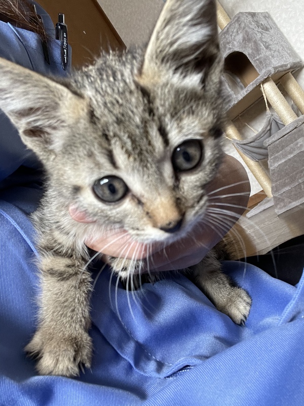 | 特徴(性格など) | サバトラです。 ノミダニ駆虫済み。 検便異常なし。 元気で子猫同士よく遊んでいます。 抱っこや撫でたり出来ます。 |