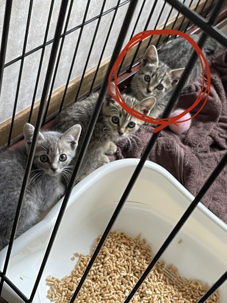| 里親募集する理由 | 野良ちゃんだったお母さん猫を交通事故で亡くし子猫4匹が残っていると知人から相談があり保護しました。4匹のうち一匹は保護してすぐ亡くなってしまいました。今現在頑張って生きている3匹は必ず幸せにしてあげたいと思っています。うちは保護犬保護猫が2匹ずつおりこれ以上飼うのは困難な為、大切にしてくださる里親様を探しています。 | ||