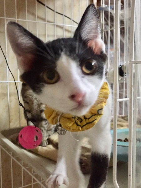 | 特徴(性格など) | 黒白の綺麗なハチワレ柄です。 しっぽは長く、先が少し曲がってます。 目と目が離れている猫なのに 魚顔です(^^;) おっとりした性格で C330124のきじくんと兄弟です。 きじくんが先に行くタイプで しろくろくんは付いていくタイプです。 お腹を撫でると手を舐めてくれます。 会った瞬間に、手でサッと保護出来るほど人馴れしてます。 男の子は、適正時期に去勢することで おとな猫になっても 子猫のような甘えん坊に育つことが多いです♡ |