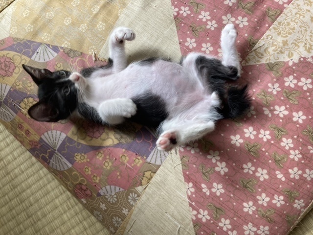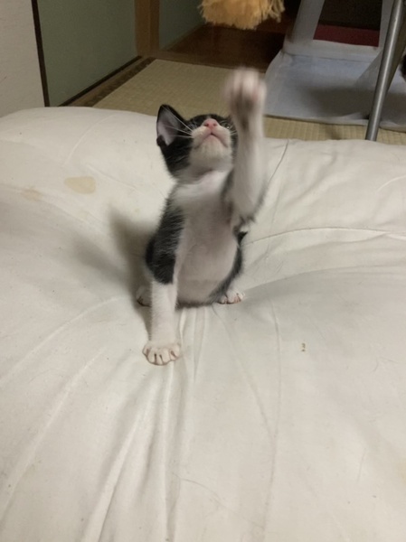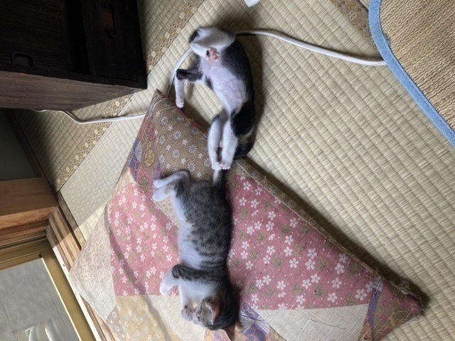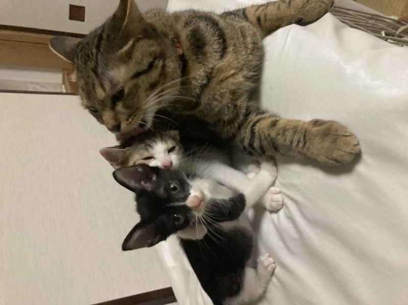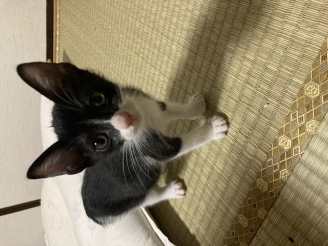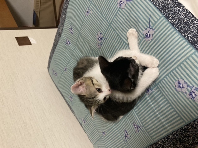 | 特徴(性格など) | キジ白…女の子。3か月弱。スタンダードな、背中は綺麗にキジでお腹は真っ白、縞々のしっぽがすらりの綺麗な子です。元気に日々自主トレをして家の猫に甘えて、と天真爛漫に育っております。最初から一度も粗相なし、爪とぎもちゃんとそこでするという賢い子です。 黒白…男の子。約2か月半。見事なマスクオブゾロの顔です。釣り針の如き見事なカギしっぽ。姉に甘え家の猫に可愛がられ、こちらも元気で可愛い、というタイプの子です。こちらもおトイレや爪とぎは最初からOK。 |