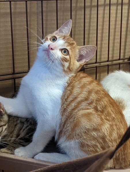 | 特徴(性格など) | 三兄妹 人馴れ修行中です 〇茶トラ:かつら(♂) 人馴れ完了てゴロゴロです。 〇三毛:すずらん(♀) ビクビクしていることもありますが、お腹出すまで成長しました |