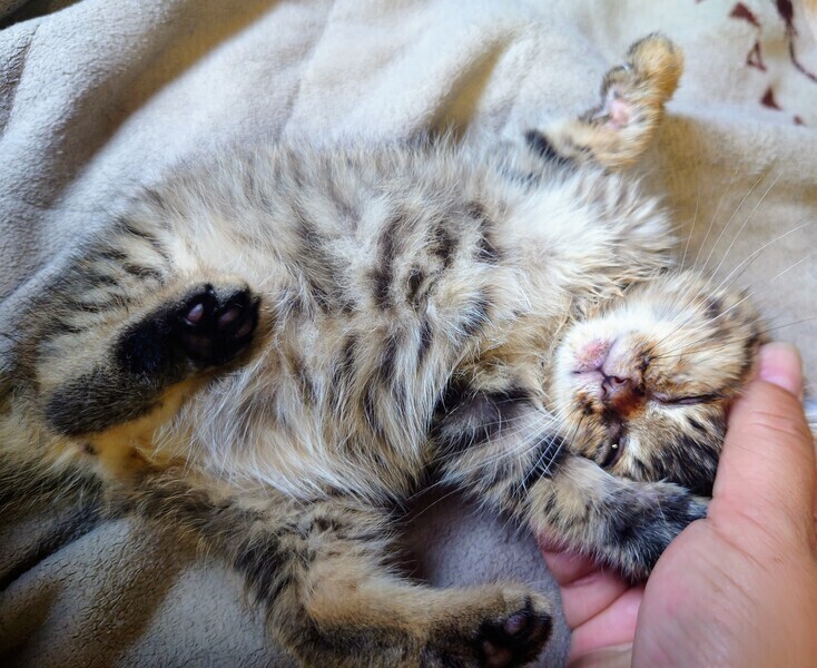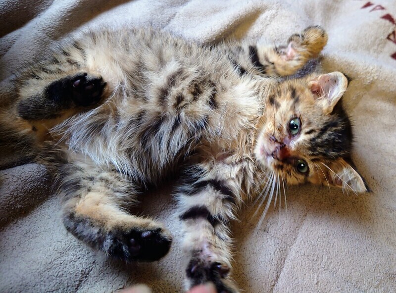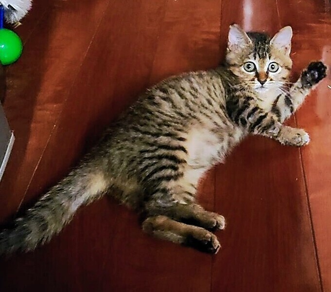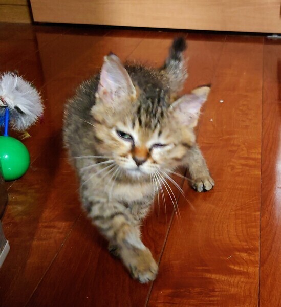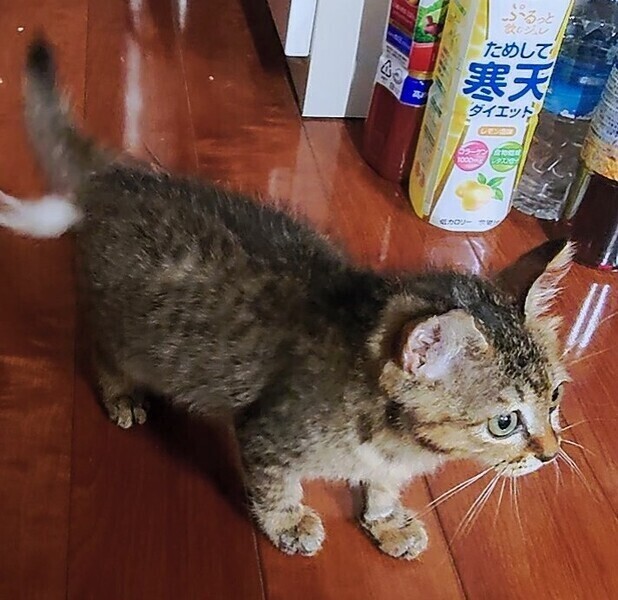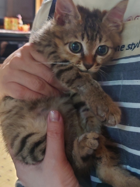 | 特徴(性格など) | キジトラの女の子(仮)こむぎちゃんです。 目が大きくて可愛らしく、表情豊かです。 とても元気で好奇心旺盛、人馴れしてて甘えん坊です。 |