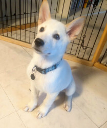 | 特徴(性格など) | ■特徴 mix仔犬♂薄茶白 生後4ヶ月 体重6kg ◼︎性格・暮らし ・警戒心は強めですが、慣れると懐っこいです ・諸々の社会化トレーニングを進めています ・グイグイ来る兄妹犬よりも一歩下がって様子を見るタイプです ・猫とも仲良くできます ◼︎今まで行った医療行為 ・6種混合ワクチン ・検便(-) ◼︎今後、行う予定の医療行為 ・血液検査 ・フィラリア検査 ・狂犬病予防ワクチン ・去勢手術 ・マイクロチップ装着 |