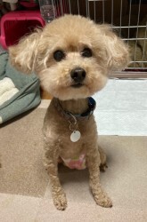 | 特徴(性格など) | ■特徴(仮の名前:ルピー) トイプードル♀ アプリコット 11才 体重3.4キロ ■性格・暮らし ・明るく、人懐こい甘えん坊な性格です。 ・他犬ともそつなく暮らせます。 ・トイレは散歩中でも室内でも出来ますが、室内トイレは練習中です。 ・お散歩は練習中です。 ・お留守番・就寝はサークルの中で過ごせます。 ■今までに行った医療行為 ・6種混合ワクチン (6/7) ・健康チェック (6/20) ・血液検査(6/20) ・フィラリア抗原検査(ー) (6/7) ・検便(-) (6/20) ・マイクロチップ確認 (6/6) ・避妊手術 ■今後行う予定の医療行為 ・狂犬病予防ワクチン ・歯科処置 |