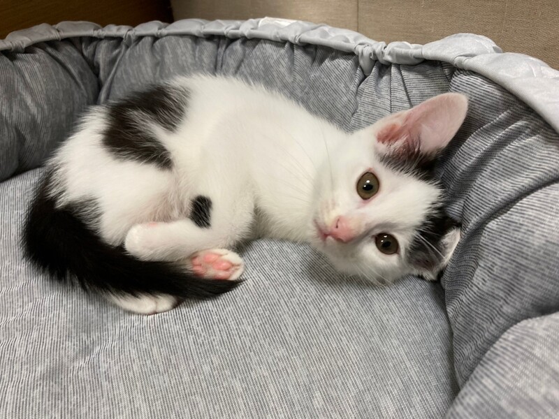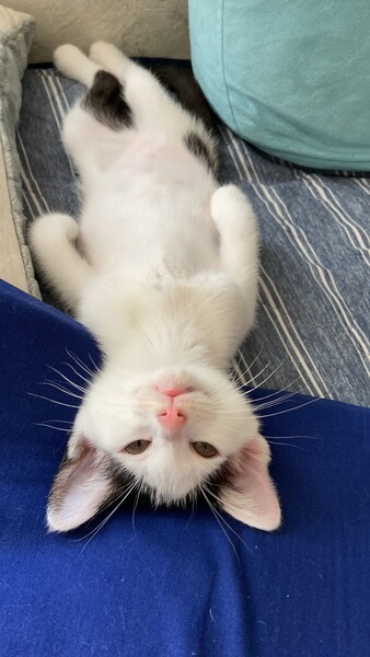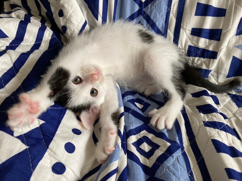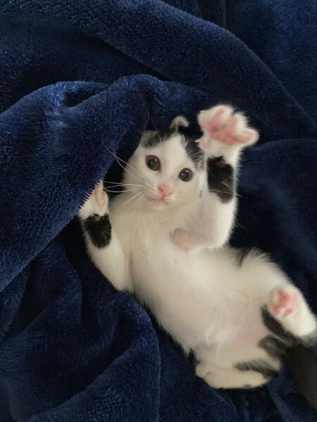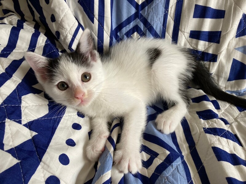 | 特徴(性格など) | 【仮名】よつば 【生年月日】推定2022年5月下旬生まれ 【種類】MIX 【毛色】ホワイト&ブラック 【性別】メス 【避妊】未 【ワクチン】済 【駆虫】済 【猫エイズ・猫白血病】未 【健康状態】良好です。 【性格】 兄弟が先に卒業しひとりになりました。元々人に甘えることが大好きですが、もっと寄ってくるようになりました。 一人でおもちゃで遊ぶのも、猫じゃらしで人と遊ぶのも大好きです(^^)活動範囲もあまり広くはなく人の近くや見える範囲で遊んでいます。 預かり宅には先住犬がいるので犬との生活も問題ありません。 |