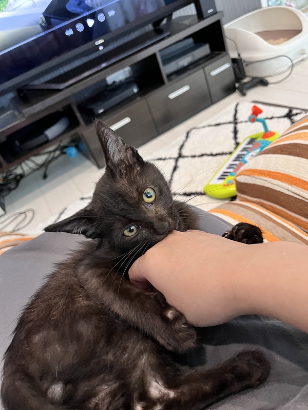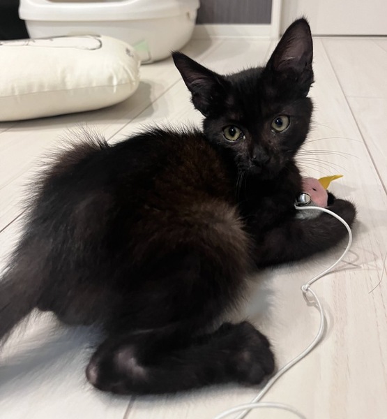 | 特徴(性格など) | 黒猫ですが少しグレーのような 色が入っています。 とても人懐こく、抱っこすると すぐゴロスリしてくれます。 |