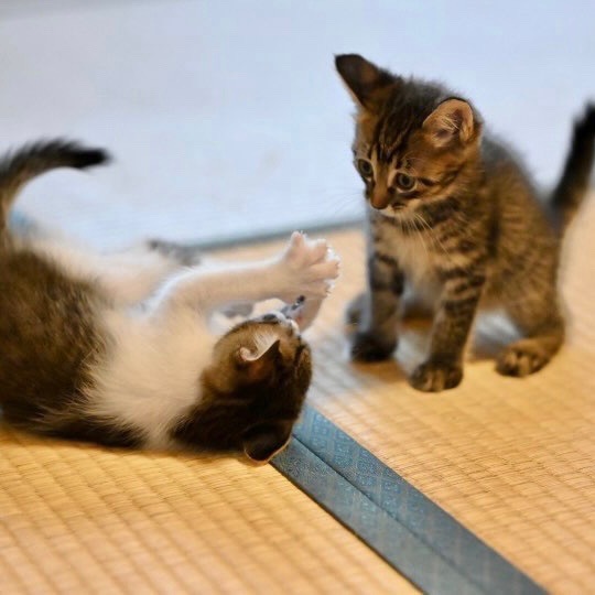 | 特徴(性格など) | おうちで生まれた子なのでお外を知りません。 2匹兄弟でママのおっぱいも独占状態で育ちました。 生まれた時から人間と暮らしているため、人馴れはばっちり。 甘えん坊な人懐っこい男の子に育ちました。 うっしーくんよりも、まだまだママに甘えているところを見かけることが多いですが(笑) 遊ぶときは全力で、にゃんプロもなかなか強いです!スピちゃんとバークくんともとても仲良しで、よく一緒に遊んでいます。 一人でもジタバタと楽しそうにしていることも多いです。 生まれた時からずっと2匹一緒に育っていますので、出来たら2匹でのお迎えが希望です。 また、健康管理・脱走対策はしっかりやっていただきたいと思っております。 対策等でわからないことはアドバイスさせていただきますので、疑問点などは遠慮なく聞いていただきたいです。 |