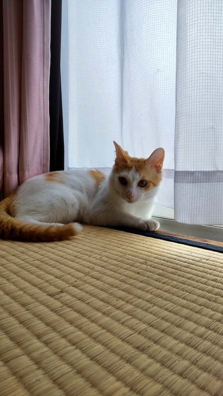 | 特徴(性格など) | 茶色、白混ざっている 性格は気分屋で甘える さみしがり屋、外を見るのが好き、 布団に寝るのが好き、おもちゃが好き |