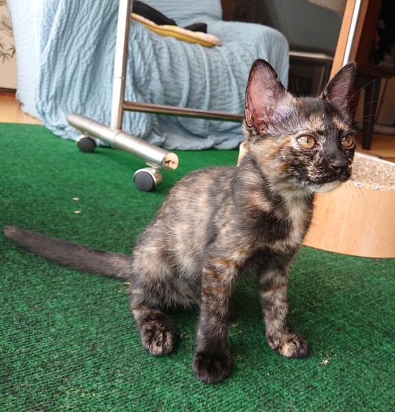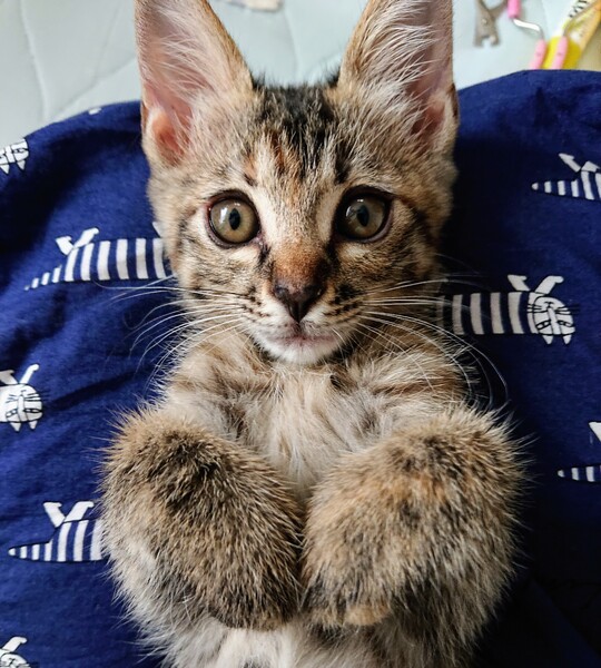 | その他(譲渡条件など) | 完全室内飼いで、終生可愛がっていただける方。 できればお迎えに来ていただけると助かりますが、お届けも可能です。 サビ猫さんはあまり人気がないですが、運動能力が高く、愛情深い子が多いです(我が家の先住も2匹がサビ)。是非ご検討ください。 |