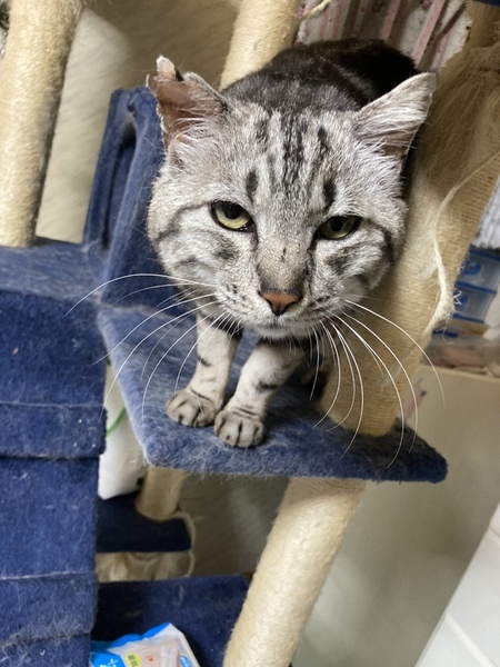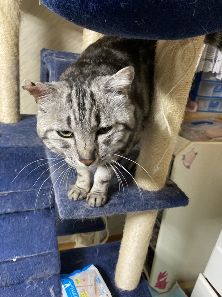 | 特徴(性格など) | 抱っこは苦手でもブラッシングと撫でられるのは大好きですぐゴロゴロしちゃいます 食欲旺盛の大食い ちゅーるが大好物です しっぽは真っ直ぐ長く、アメショかアメショにそっくりな柄です。 とっても綺麗好きでトイレは2〜3個必要です。 エイズ陽性のため、同じくエイズのある先住猫のいるお家か、1匹で飼っていただくのが良いと思います。 ・不妊去勢手術済 ・ワクチン未 ・ノミダニ取り済 ・駆虫未(便検査クリアしたため) ・トイレしつけ済 ・ウイルス検査 エイズ(+)、白血病(ー) |