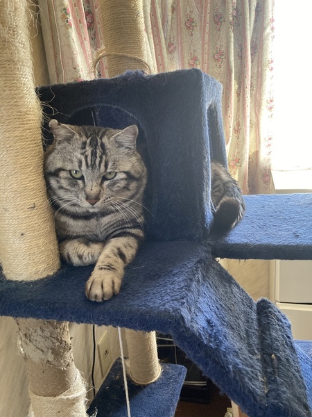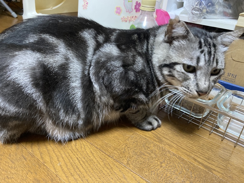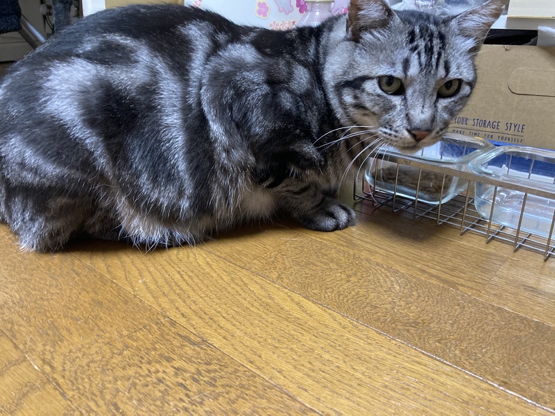 | 里親募集する理由 | 2月に庭に現れ1ヶ月も経つとどんどん痩せていきました。 アメショにそっくりな柄で人馴れもしていたため迷子だと判断し、預かって各種機関に連絡して飼い主を探しましたがみつからず、5月にうちに正式譲渡(?)となりました。 友人知人にあたりましたが誰も飼えず、うちには8匹猫がおり、面倒をみている地域猫も5匹いて、これ以上は無理と判断して里親さんを募集します。 |