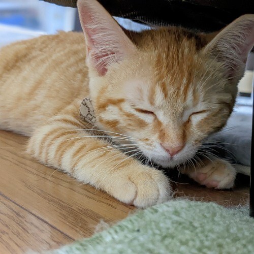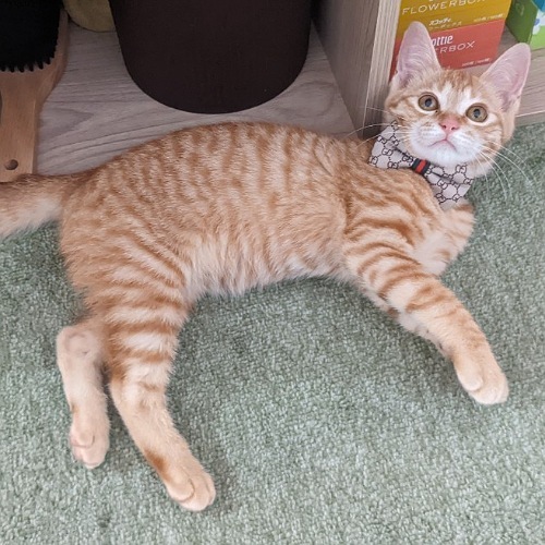 | 特徴(性格など) | 小さな体でおもちゃめがけて駆け回ります。 最初はびびって逃げますが、慣れると抱っこも出来ます。 |