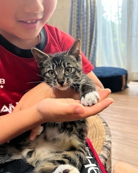 | 特徴(性格など) | 【仮名】セサミくん 【性格】あまつたれお(甘ったれ男)のセサミくん☆ 今年度最強の甘ったれぶりです! 保護された時からおっとりタイプの甘えん坊セサミくん♪ 長ーいしっぽとフワフワの毛がチャームポイントです♡ とにかく人間大好き!かまってちゃんなので甘えさせてくれる家族を絶賛大募集です! 兄妹で保護されました。ごまちゃんと兄妹です。 兄妹の取っ組み合いのはげしいことに?(^^;) カーミラちゃんとアルテナちゃんがドン引きしたのは秘密ですww めちゃくちゃおっとりさんで子供に抱かれても へっちゃらなつわものです。 三度のご飯より遊びが大好き!♪一緒に暮らしているにゃんことも 適度な運動をしながら(*^▽^*)暮らしてます! 駆け回れるおうち!待ってます! ※1ピキ譲渡ご相談ください。 |
