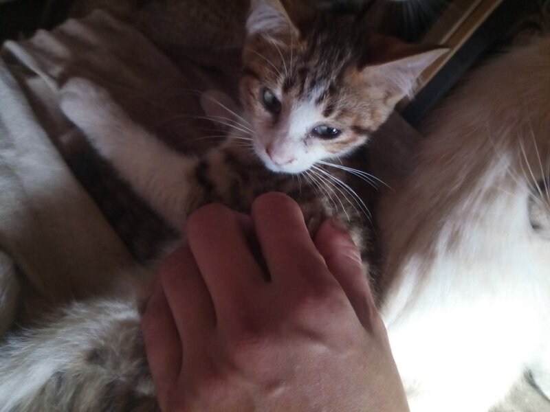 | 特徴(性格など) | 春生まれの3兄弟(他2匹もプロフィールからぜひご覧ください) とても美人なキジ×白、外猫にしてはのんびり屋さんです。(写真3枚目は左側、写真4枚目は右側です) 農家の庭先で生まれました。人なれしています。母猫がよくお世話をしており、健康状態も良好です。ただし外暮らしのためあくまでも外観からの判断になりますことご承知ください(猫用結膜炎の目薬やノミダニ薬の投与など最低限のケアは行いました)。 まわりに去年生まれの兄弟たちもいる環境で、年上猫にもなれています。二匹目、三匹目としても適していると思われます。 同時に複数引き取ってくださる方大歓迎です。 |