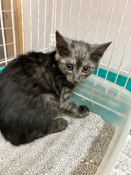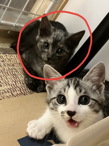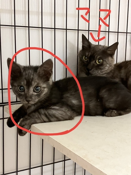 | 里親募集する理由 | TNR現場で生後1ヶ月半くらいで保護 他にもミケ♀2匹、サバシロ♂の4兄妹です |