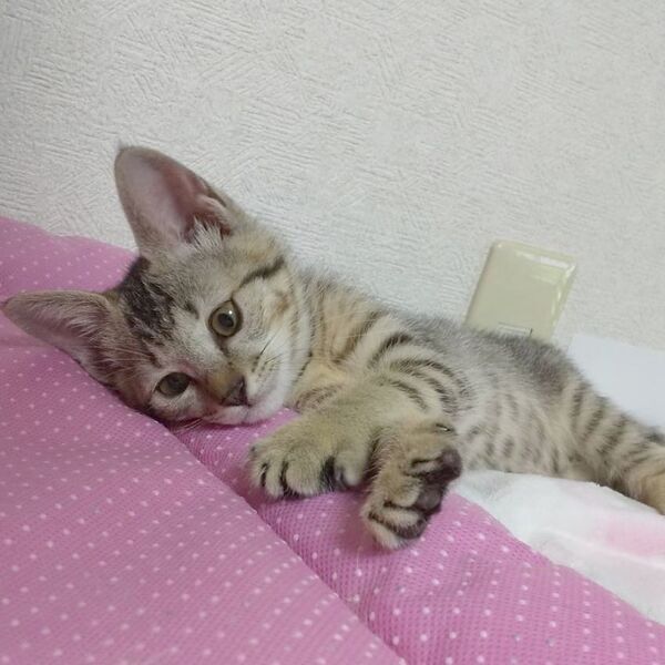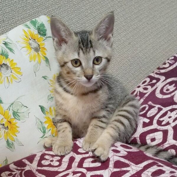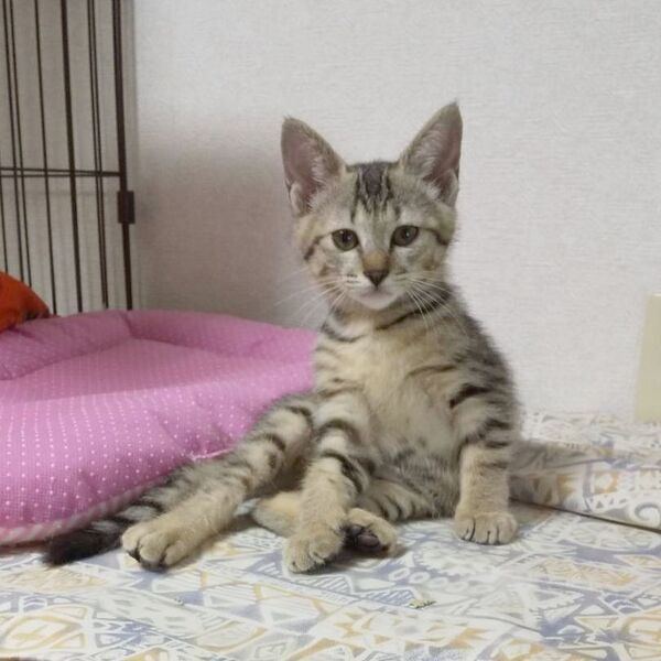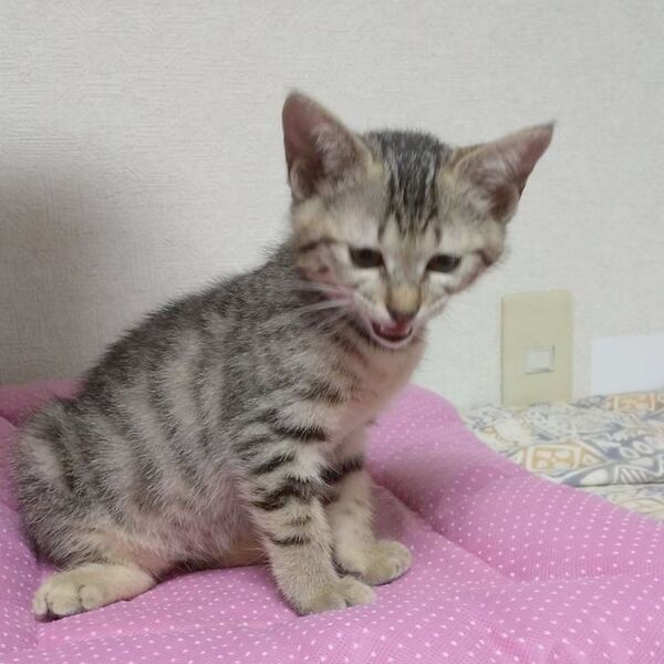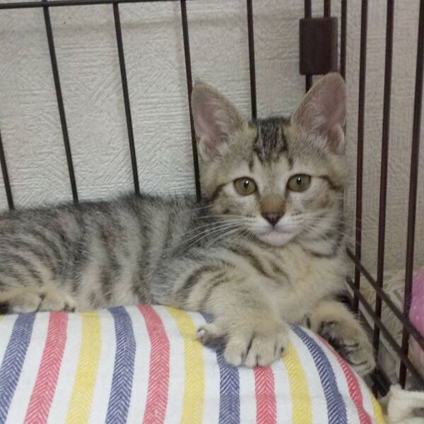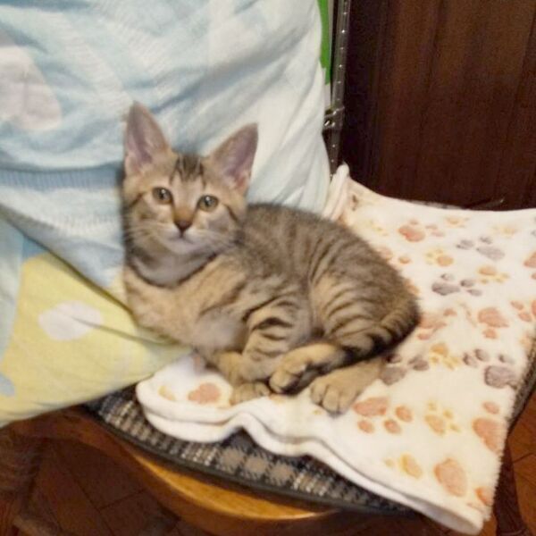 | 特徴(性格など) | ノミダニ駆除済み 検便駆虫済み ワクチン1回済み キジトラの女の子です。仮名は愛ちゃん。 少し人見知りが出てきて最初は隠れるかもしれませんが、慣れるとスリスリとして顔をみて鳴いて甘えます。 ご家庭のアイドルとしてご家族を笑顔にしてくれますよ。 兄妹にシャム系の蓮くん(男の子)がいます。2匹一緒だと嬉しいですが、1匹でも大丈夫です。 ネットが苦手な保護主に代わり代理で募集しております。(連絡先は下記記載) お問い合わせは下記の連絡先に「愛ちゃんの件」とお問合せ下さいませ。 |