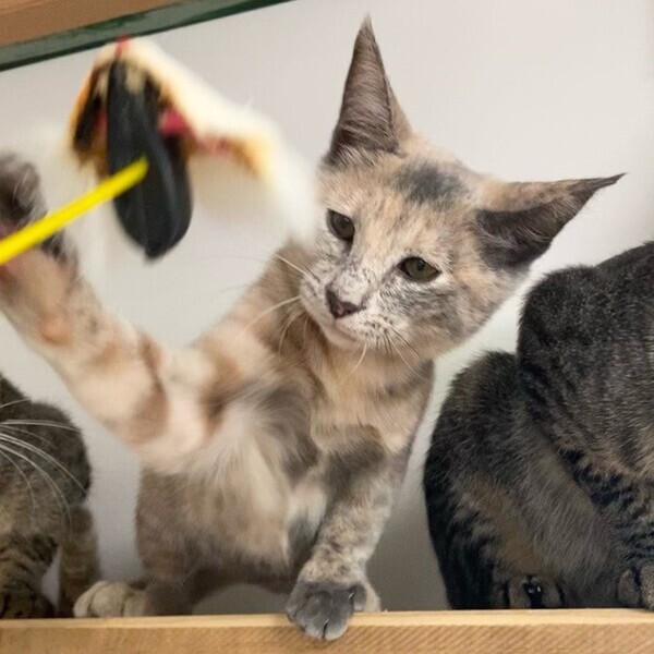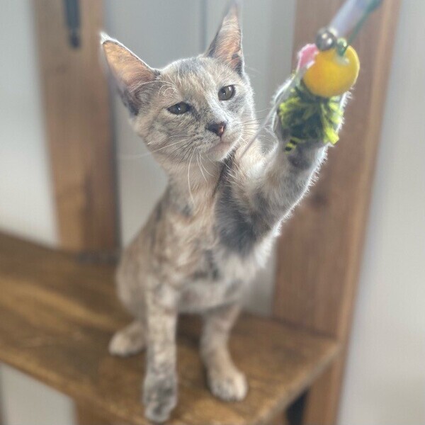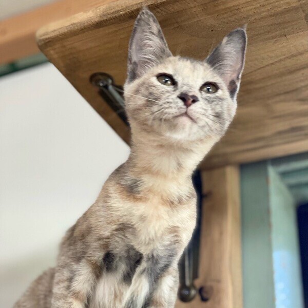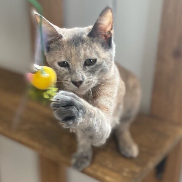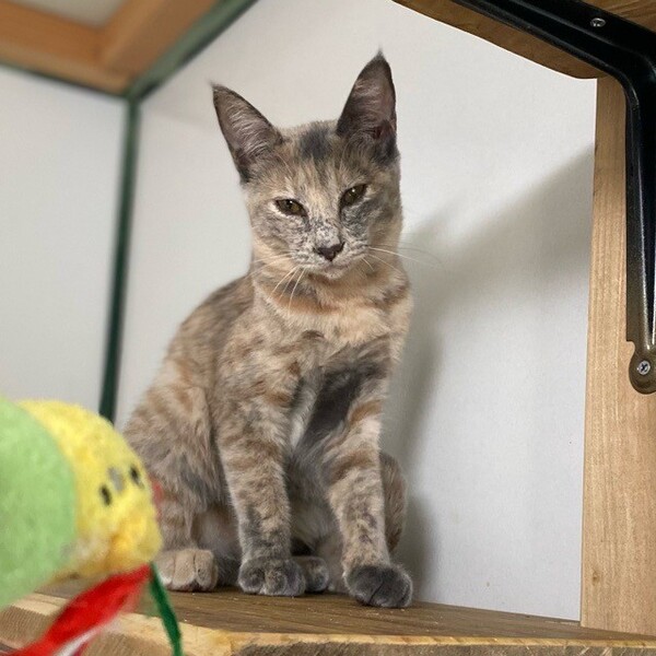 | 特徴(性格など) | まだまだビビりの「楡(にれ)」ちゃん❤ 穏やかで物静かだけど、とっても利発でしっかり人の目を見て話を聞ける女のコ♪ 大好きパウチタイムには高いところから、私もここにいるよーー!の眼力アピール♪ 現在、ドライフードを24時間の置き餌として栄養補給、水分補給のため一日2回パウチを与えています。 <推定誕生日:2022年4月中旬> |
