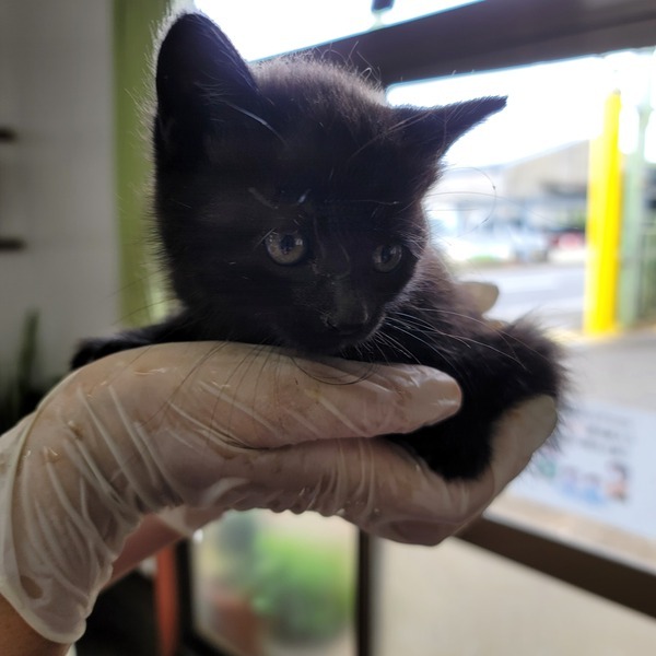 | 里親募集する理由 | 先日 鳴いているところを保護しました。生後1か月半程度かと思います。ご飯も普通のごはんで大丈夫です。本日 病院で診察して頂く予定です。 | ||