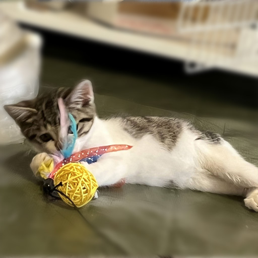 | 特徴(性格など) | キジ白の男の子です。 しっぽは長く、毛は短くて柔らかいです。 活発で元気いっぱいです。 大人猫のことも大好きで、我が家の猫の後追いもしています。 猫じゃらしでもよく遊びます。 |