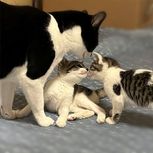 | 里親募集する理由 | お外で生活していたところを保護しました。 兄弟も保護、母猫はTNR済です。 保護当初は、ガリガリに痩せていましたが、1週間ほどするとしっかり 食事をするようになり元気に育っています。 |