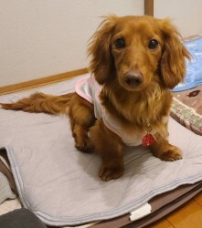 | 特徴(性格など) | ■特徴(仮の名前 レア) Mダックス♂レッド 推定3~4歳 体重4.5キロ ■性格・暮らし ・人が大好きですが慣れるまで少し時間が必要です。 ・ケージインは苦手です。 ・お留守番はフリーでできます。 ・身軽で、高い所も飛び乗るので注意が必要です。 ・トイレはお外でします。トイレシートの認識はないようです。 ・他犬とはそつなく過ごせます。 ・お散歩は引くこともなく、とても上手に歩けます。 ・車酔いすることもなく、おとなしく乗っていることができます。 ■今までに行った医療措置 ・6種混合ワクチン (6/3) ・健康チェック(7/11) ・血液検査 (7/11) ・フィラリア検査(-)(7/11) ・検便(-) (7/11) ・去勢手術 (7/12) ・歯石除去 (7/12) ・マイクロチップ装着 (7/12) ■今後、行う予定の医療行為 ・狂犬病予防接種 |