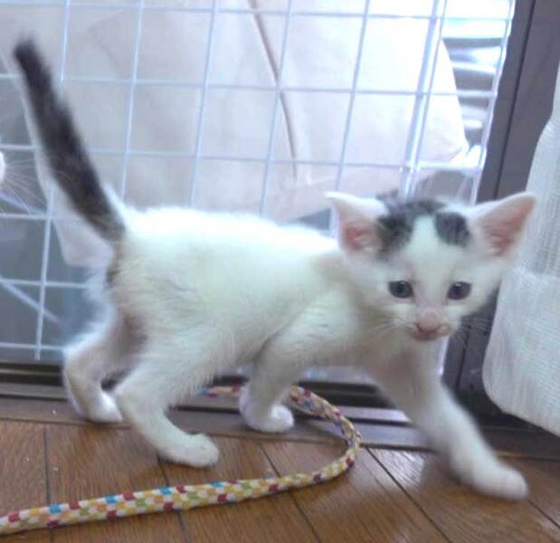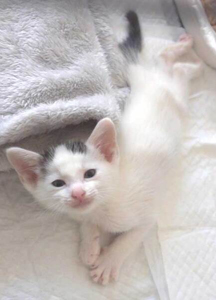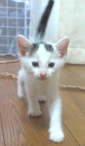 | 特徴(性格など) | 大変かわいらしい白黒子猫の男の子です。 人馴れしています。 好奇心旺盛で元気です。 是非シェルターにお越しください。 |