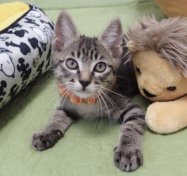 | 特徴(性格など) | ★★★東京・東銀座★猫の譲渡会★駅チカ2分東劇隣り★★★ 子猫ちゃん〜成猫ちゃんまで参加します ※掲載の猫ちゃんとのお見合いは譲渡会場になります。 事前のご予約は必要ございませんので当日会場へお越しくださいませ。 ◇会場のご案内・開催日時等、詳しくは下記をご覧ください。 猫の未来とびらホームページ http://nekonomiraitobira.com/ ★☆★「猫の未来とびら」譲渡会参加予定の猫ちゃんになります★☆★ ◇仮名◇銀たろうくん ◇毛色◇きじとら ◇性別◇オス ◇性格◇ 白たろうくん含め3匹兄弟ですが、キジトラの金たろうくん、銀たろうくんは実にそっくりです。ピンとした大きな耳、アーモンドアイ、尻尾がとても短くてウサギ尻尾です。そういう外見が本当にそっくり。更に、どの子も大変に人慣れしているので、怖がることなく元気に遊んで、甘えてきて、今は本当に見わけがつきません!(笑) とても小さい時に保護されましたので、この先成長と共に各々の個性が出てきて変わっていくでしょう。 楽しみにして下さい! 譲渡会に参加予定の猫ちゃん一覧 http://nekonomiraitobira.com/archives/category/next |