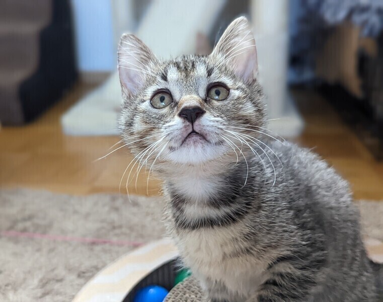 | 特徴(性格など) | ◆おばこちゃん 人が好きなおっとりサバトラ女子 ●月齢の小さな子猫は、以下の条件についてご了承の上で応募をご検討下さい。 ◆お留守番の少ないご家族、 ◆横浜市青葉区内もしくは近郊にお住いのご家族、を希望します。 ◆2匹でお迎えくださるご家族を優先いたします。 ◆小さなお子様のいるご家庭は状況によりお断りする場合がございます。 ◆高齢者のみのご家族からの子猫のお申し込みはお受けしていません。 ○秋田県内で母猫と兄妹と一緒に保護されました。 ○月齢は生後2ヶ月ぐらい(2022年7月中旬時点)、体重は740g(2022/7/9時点)です。 ○同じく里親様募集中の「ハタハタ」「きりたんぽ」「まげ」「わっぱ」は兄妹、「おこめ」はお母さんです。 ○サバトラの女の子で、しっぽはまっすぐです。 ○保護された時は体重97gととても小さかったですが、愛情深いママ猫のもとすくすく育ちました。 ○性格はおっとりしていますが、遊びも大好きです。身体の大きな兄妹ともニャンプロレスで負けていません。 ○人が好きですぐに膝の上に乗ってきます。 ○兄妹と一緒にお迎えくださる方を希望します。 ☆ワクチン1回済み。 ☆猫エイズ、猫白血病ともに陰性。 ☆不妊手術は成長と体調を見て実施予定です。 ○YouTubeにも動画をあげています。こちらもご覧下さい。 「おばこ」https://youtu.be/ni_PzdoSojE 〇7/24(日)開催の譲渡会に参加予定! 下の要項をお読みいただき、ぜひ会いに来てください♪ ☆★☆★☆★☆★☆★☆★☆★☆★☆★☆★☆ 7月24日(日)荏田にて譲渡会開催! ◎場所・・「島忠 荏田店」 神奈川県横浜市青葉区荏田西1ー3ー14 田園都市線「江田」駅より徒歩約7分 246号線江田駅交差点そば ◎日程・・7月24日(日)(雨天決行) ◎時間・・13時から16時 【15時30分受付終了】 (会場に利用可能な無料駐車場がございます。そちらをご利用くださいませ。) 今回はコロナ対策のため、制限を設けての開催となります。 *3密対策のため、当日12時30分より整理券を配布いたします。 *各回15分 *各回先着3組様 *参加の際は、マスクの着用、アルコール消毒のご協力をお願いいたします。 *当日は検温の上、体温が37度以上の方はご参加いただけません。 *混雑状況により、中止させていただく場合がございます。 ※参加予定の犬猫は体調により参加できない場合があります。ご了承ください。 ☆★☆★☆★☆★☆★☆★☆★☆★☆★☆★☆ |