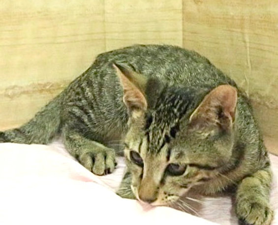 | 特徴(性格など) | 4s93、4s94、4s95、4s96は同腹の兄弟姉妹です。4s93はしっぽがまっすぐでとても長く、お腹は点々模様、全身綺麗なキジトラです。 オスらしい活発な子で、最初こそ緊張しますが、慣れると一気にいたずら坊主になります。運動神経が良く、遊びが大好きで、この子にかかればただの紐も立派なおもちゃに大変身!爪切りは短時間ですませれば十分上手にできます。 |