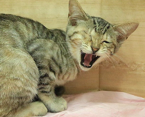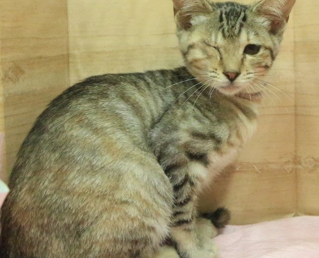 | 特徴(性格など) | さび猫「4s92」 SKU: 4s92 4s88、4s89、4s90、4s91、4s92は同腹の兄弟姉妹です。4s92は 一見キジトラですが、所々薄いクリーム色が混ざったサビ模様です。また、体半分のキジ縞が薄く、首にゴム輪を付けているのが目印です。右目の調子が悪く閉じていることが多いです。 兄弟の中では小柄ながら良質なインナーマッスルの持ち主で、触りごごちは抜群です。性格は大人しくややビビリですが、お膝に乗るのが好きです。ずっといい子にしていたので爪切りも上手にできました! |
