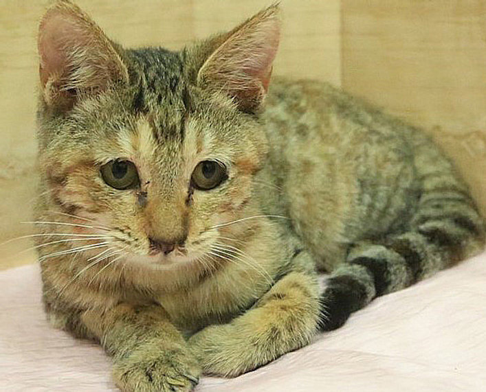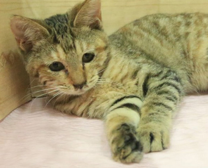 | 特徴(性格など) | 一見キジトラっぽく見えますが、茶トラが混じったサビ模様です。毛がかなり柔らかいので撫でるとホワっホワ? 垂れ目気味で可愛らしい顔つきをしています。 性格は「ぽんやり」のんびりマイペース。お膝の上に乗ると、ものの数十秒でうとうとし始めます。だっこ・膝・爪切り全く問題なしの優等生。しっぽは先までまっすぐです。 |