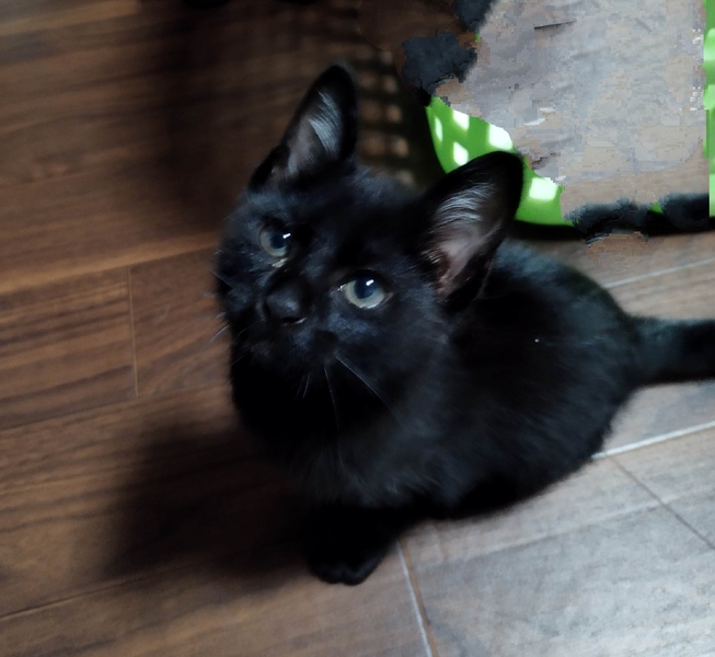 | 特徴(性格など) | 耳の中の毛が少し白いです 体は真っ黒です とても艶のある綺麗な黒です |