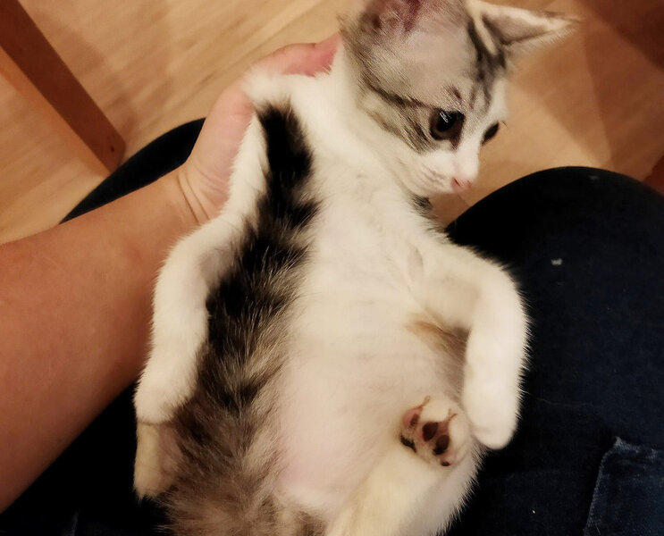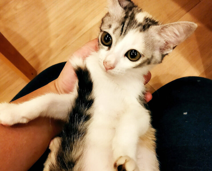 | 特徴(性格など) | 4s16、4s17、4s19は同腹の兄弟姉妹です。4s19の被毛はクリーム、茶、サバトラ、白が混じっており、毛色全部載せくらい満足度が高い(笑)三毛猫です。 瞳は薄い青。性格は穏やかで、ナデナデが大好き。背中を少し撫でられただけで、小さくですがバルバル言います。お膝でも大人しく、爪切りも上手にできます。 |