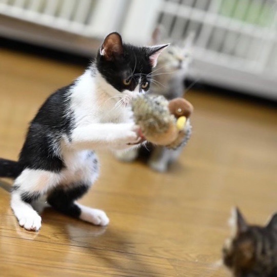 | 特徴(性格など) | とてもフレンドリーで元気いっぱい! 実はラックくんだけお母さんが違うようですが、お外時代からずっと4匹兄妹と一緒に育っていたので、ほぼ兄妹みたいなものです(笑) 最初は少しビビりさんですが、だんだん慣れて、今ではすっかり遊ぶの大好きな男の子になりました。 ご飯もウエットもカリカリも何でもよく食べ、順調に大きくなっています。 4匹とはとても仲良しで、生まれた時からずっと一緒に育っていますので、2匹一緒のお迎えも大歓迎です! また、健康管理・脱走対策はしっかりやっていただきたいと思っております。 対策等でわからないことはアドバイスさせていただきますので、疑問点などは遠慮なく聞いていただきたいです。 |