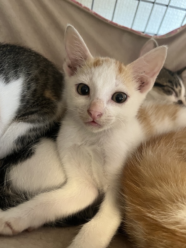| 里親募集する理由 | 野良猫にご飯を上げている方を見かけ、許可をいただいて保護しました。親は避妊予約済み。近親交配等による地域猫をこれ以上増やさない為に、責任を持って飼ってくださる方を募集しています。自宅では3匹猫を飼っており、受け入れが難しい為1匹からでも飼っていただける方がいると助かります。 | ||